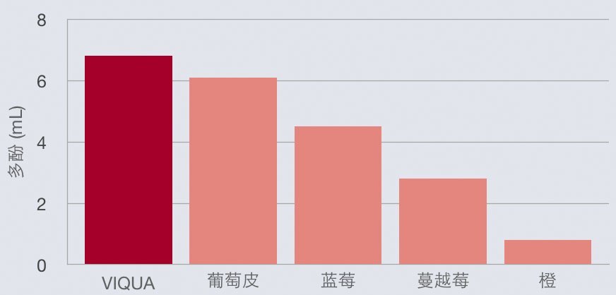 为了更好的利用和补偿天然石榴中不同含量水平(通常很低)的安石榴苷,Viqua(美蔻华)被设定为含有40%标准安石榴苷的石榴提取物。这一浓度水平比普通石榴汁高出40%。